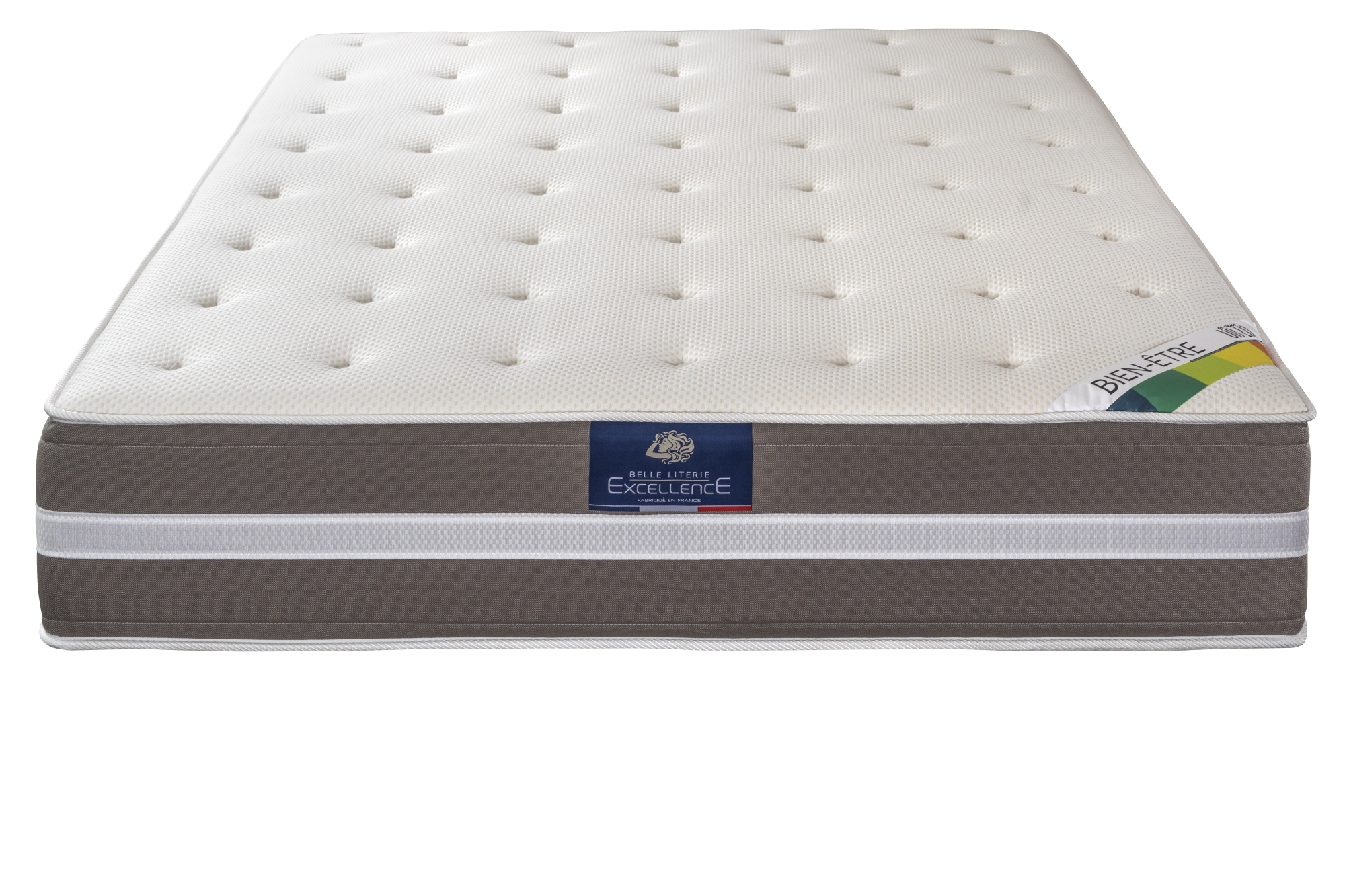 Matelas ressorts ensachés, accueil enveloppant, épaisseur finie 34 cm.